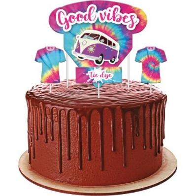 Topo de bolo Tie Dye (pacote com 4 unidades)
